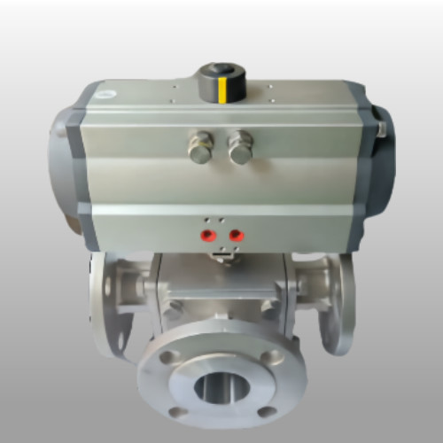 Pneumatic Three Way Ball Valve With Pneumatic Actuator ISO5211/DIN3337 Standard